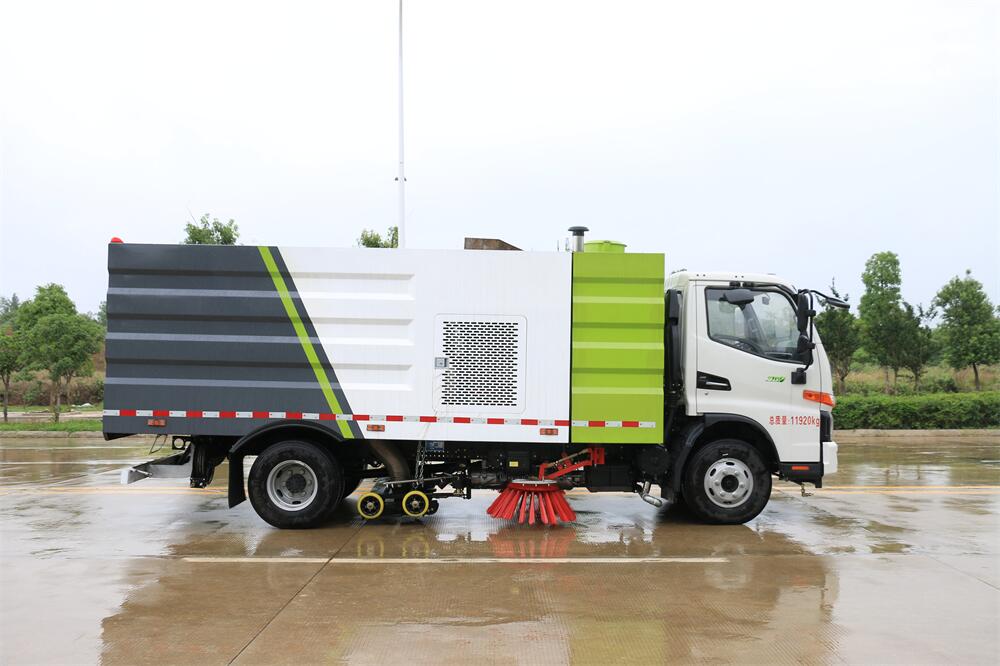 洗掃潔凈度高,該車型齊全的功能解決不同路面環境的作業,一次作業洗掃效率達98%以上,前沖功能、洗掃功能、路沿清洗功能、后噴霧功能、低壓沖洗功能以及采用的吸盤+左右側噴桿結構,路面、溝縫、彎道處、路沿上等處的灰塵、垃圾均能處理干凈,確保環境干凈、整潔。