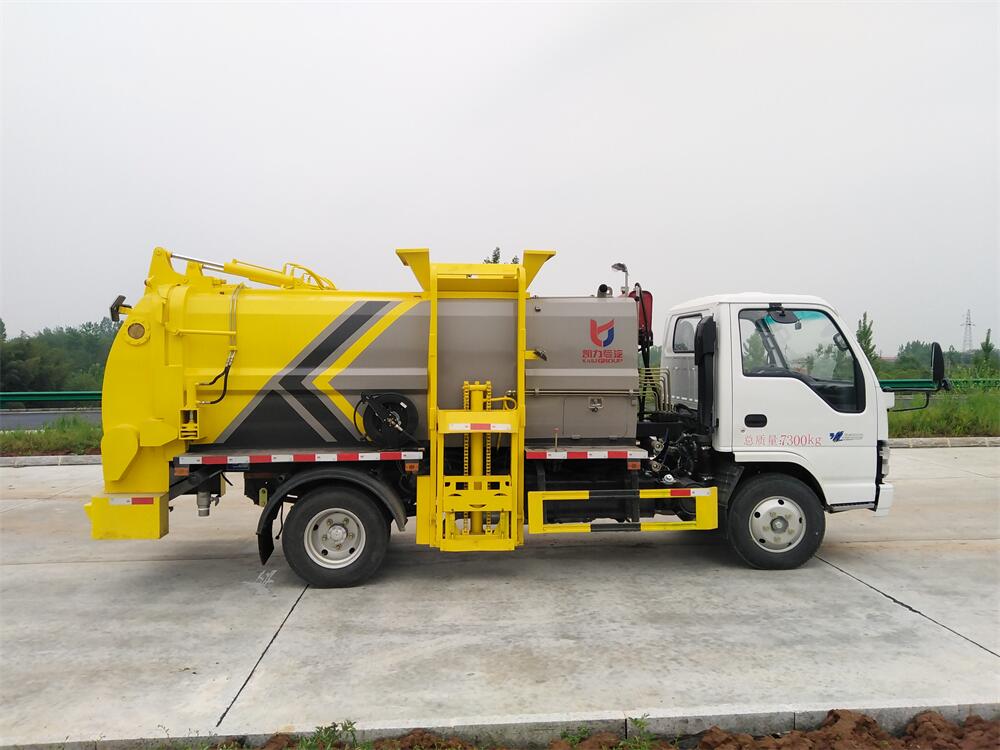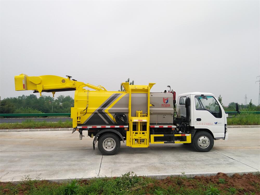上裝配置:罐體容積6m3,配備120L/240L掛桶提升翻轉(zhuǎn)機(jī)構(gòu),液壓系統(tǒng),后蓋液壓鎖緊開啟,罐體可以舉升自卸,尾部帶自流閥;用于運(yùn)輸液態(tài)垃圾,其特點(diǎn)操作簡單,密封性好,無泄漏,無異味;可選裝固液分離功能,推板擠壓功能,常用于餐館的垃圾轉(zhuǎn)運(yùn)處理。